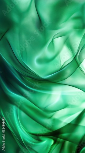 Luminous green silk waves creating abstract flowing texture