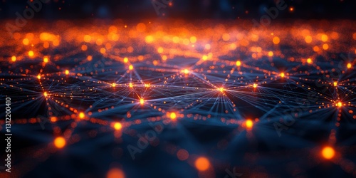 Luminous network of interconnected nodes and connections glowing in the dark