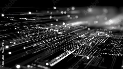 Luminous streams of programming logic and data structures intricate lines of code cascading across a darkened digital surface. graphic logic. Illustration