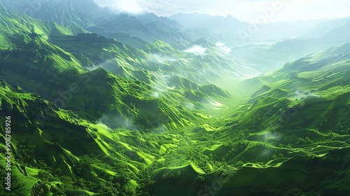 Lush digital green valleys peak and trough