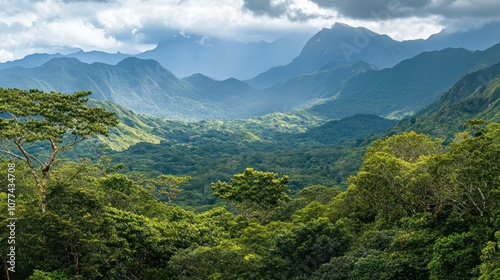 Lush Green Forested Mountains Under a Cloudy Sky