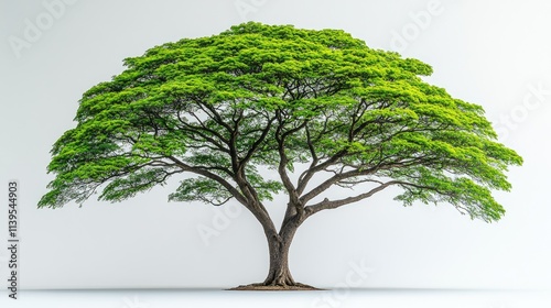 Lush green tree against white background.
