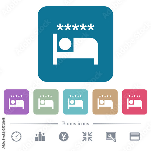 Luxury hotel flat icons on color rounded square backgrounds