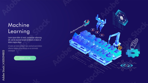 Machine learning, Ai, Data mining, algorithm, algorithm, neural network, deep learning and autonomous. isometric vector concept