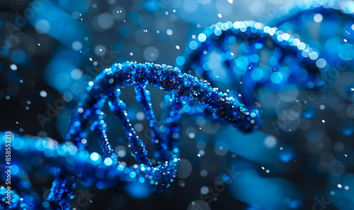 Macro View of Human DNA Helix Under Microscope in Blue Tone, Detailed Chromosomes Close-Up, Molecular Biology and Genetic Research Concept