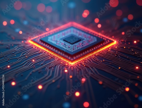Macro view of quantum processor showing detailed architecture with luminescent quantum computing elements