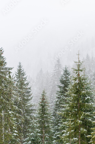 Magic of the woods during a snowfall. Val Saisera. Italy
