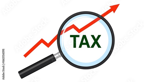 Magnifying glass on rising tax graph