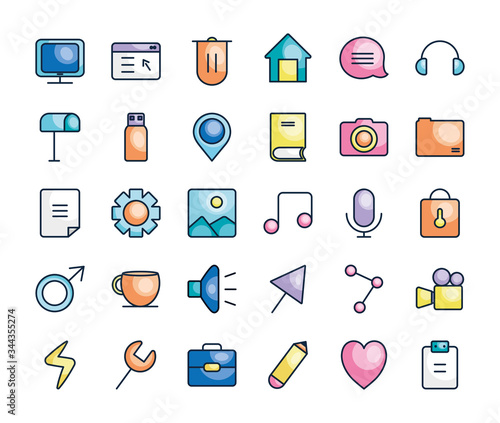 mailbox and user interface icon set, line color style