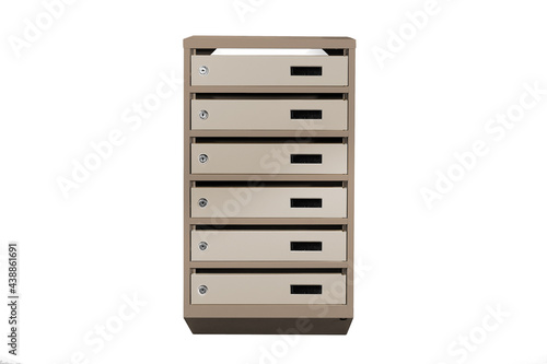 Mailboxes in the condo. metal mailbox with lockable center in condo. Mailbox on the white background isolated