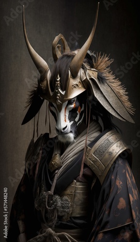 Majestic Animal Oryx Shogun in Samurai Armor: A Depiction of Japanese Culture, Armor, Feudal Japan, Bushido, Warrior, Castle, Shogun, Feudal Lord, Ronin (generative AI)