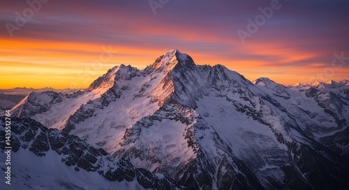 Majestic snow capped mountain range sunrise
