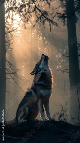 Majestic wolf in mystical forest