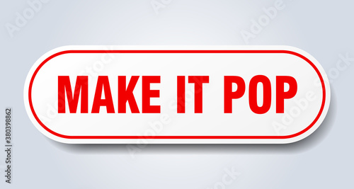 make it pop sign. rounded isolated button. white sticker