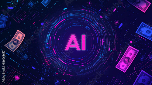 Making money with AI. Making money using artificial intelligence. Technology background, copy space.