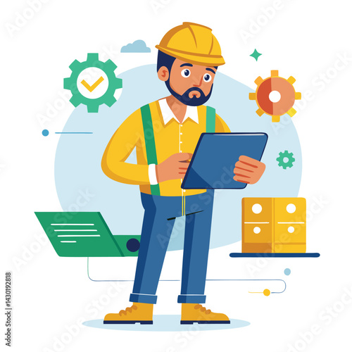 male engineer checks the program and discovers an error. Hand drawn style vector design illustrations.