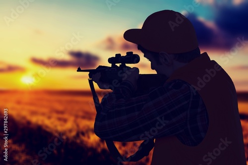 Male Hunter with Rifle on natural background