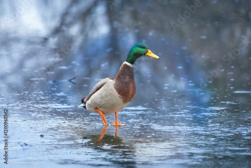 Mallard Duck on Frozen Pond