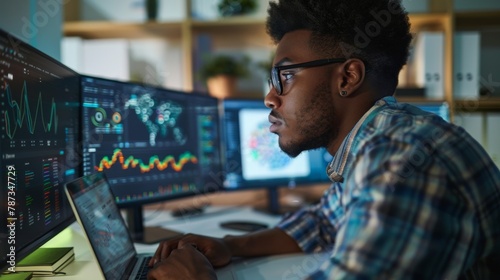 Man Analyzing Data on Multiple Monitors