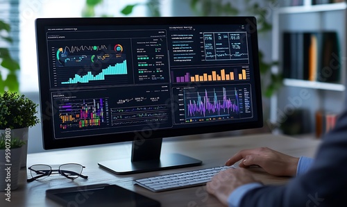 Man Analyzing Financial Data on Computer Monitor