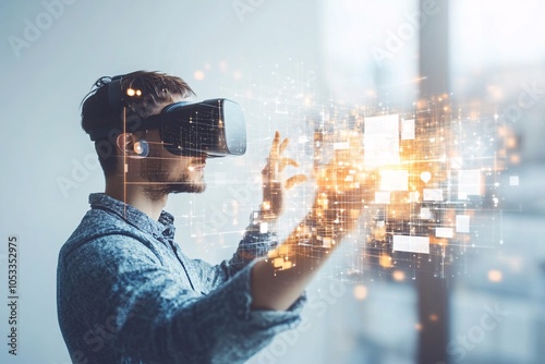 Man Experiencing Virtual Reality: Exploring the Digital World