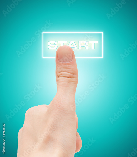 Man finger push "start" button