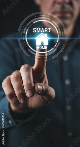 Man Hand Touching Smart Home Interface Blue Light finger