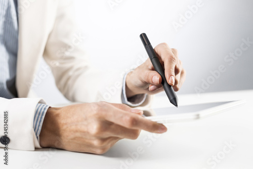 Man in business suit using tablet computer