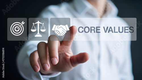 Man selecting core values for business success with digital interface