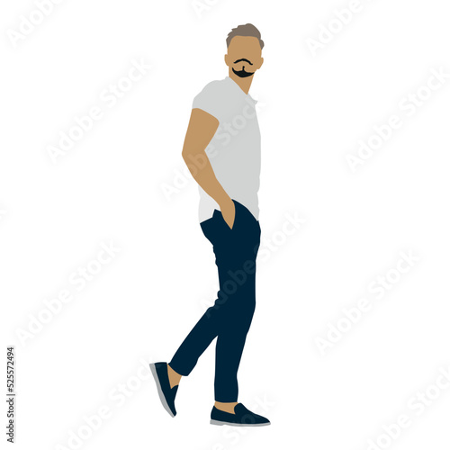 man standing pose with white t-shirt and blue pants, editable vector