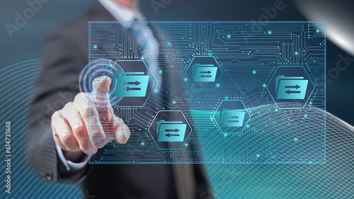 Man touching a data exchange concept