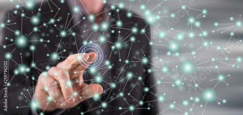 Man touching a virtual network