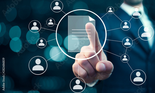 man touching file in screen