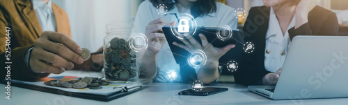 man use Laptop with cloud computing diagram show on hand. Cloud technology. Data storage. Networking and internet service concept.