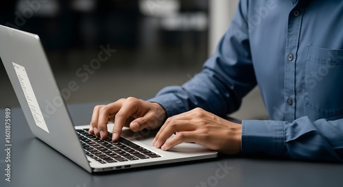 Man using laptop for work business professional typing on keyboard computer screen