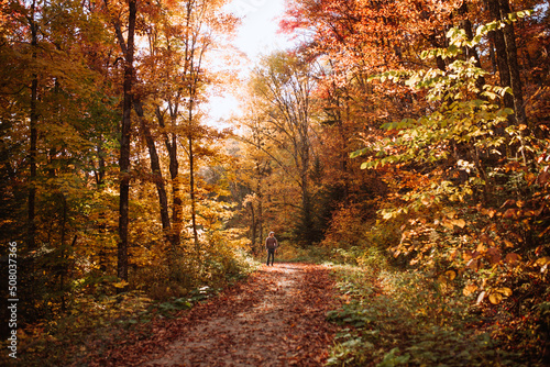 Man walking in autumn forest