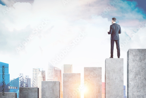 Man with documents on graph, city