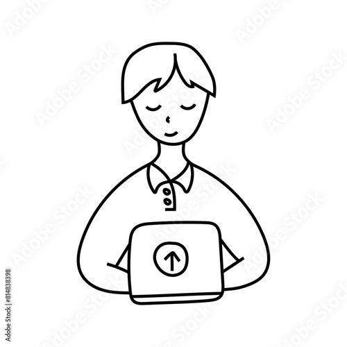 Man with laptop doodle .Vector isolated on white background