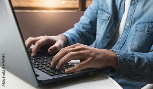 Man working with laptop at home