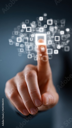 Manually pressing a virtual interface button on a blurred background