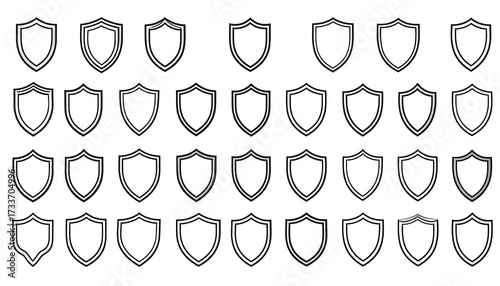 Many blank, outlined shields in a grid