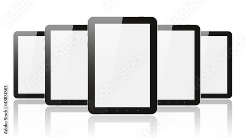 Many digital tablet pc on white background.
