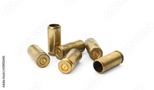 Many shells of bullets on white background