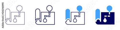 Map functionality icon in 4 different styles. Thin Line, Line, Bold Line, Duotone. Duotone style. Editable stroke