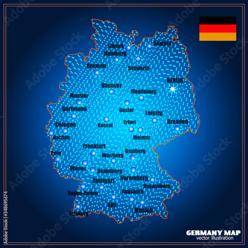 Map of Germany. Bright illustration with colorful Germania map. Germany map with cities. Illustration with transparent background.