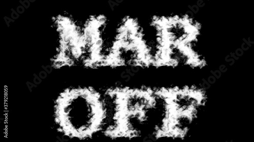 Mar Off cloud text effect black isolated background. animated text effect with high visual impact. letter and text effect.