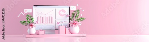 Marketing analytics, real-time data insights, 3D illustration, digital strategy concept, copy space,