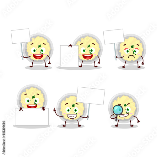 Mashed potatoes cartoon character bring information board