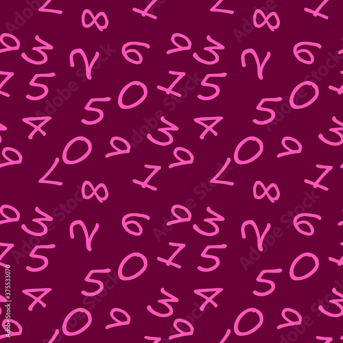 Mathematics background - different numbers in random pattern. Colorful school pattern for children. Multicolor math background for kids. Seamless abstract vector pattern