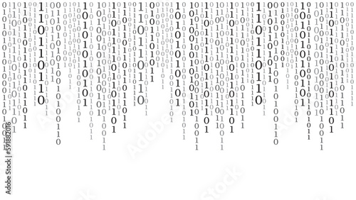 Matrix background. Cyber security with binary code. Rapidly falling randomly white numbers. Decoding algorithms hacked software. Big data visualization.